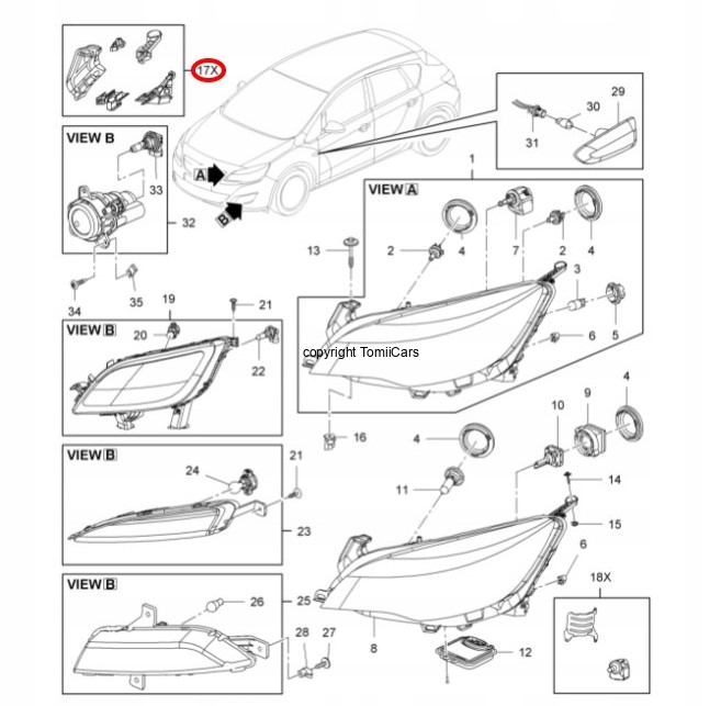 Zestaw naprawczy uchwytów reflektora – strona prawa, przeznaczony do modelu Opel Astra J.